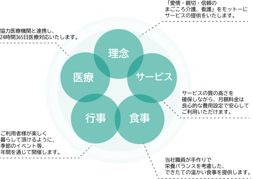| 事業内容 | 住宅型有料老人ホーム:定員21名 通所介護(デイサービス):定員20名 訪問介護 居宅介護支援事業所 |